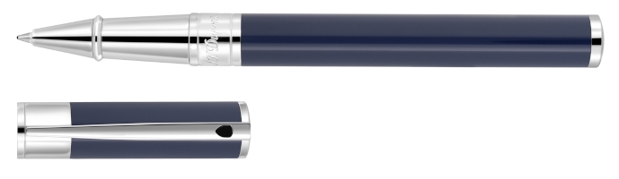 Roller con cuerpo realizado en laca de color azul oscuro con detalles cromados, suntuosamente curvado, que encaja perfectamente en la mano. El clip articulado, grabado en relieve con el escudo de armas ST Dupont, se adapta cómodamente a los bolsillos y les proporciona protección al día a día. Cierre a presión. Recambios asociados: 040853 Azul, 040854 Negro, 040358 Rosa, 040359 Rojo, 040360 Verde y 040361 Turquesa. Dimensiones: 140,81 x 13,10 mm. Peso: 44g