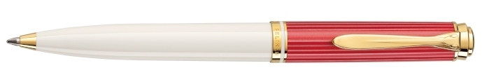 El bolígrafo Pelikan Souveran K600 Red-White, destaca por su combinación de colores blancos y rojos, que han sido cuidadosamentes elaborados en resina preciosa y acetato de celulosa para una mayor durabilidad y belleza excepcionales. Para añadir un toque de opulencia, todos los anillos y el icónico clip de pelikan están elegantemente chapados en oro de 24 quilates. Sistema de giro. Recambio de bolígrafo Pelikan modelo 337 disponible en trazos: F, M y B en colores: azul, rojo y negro.