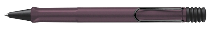 Bolígrafo realizado en plástico ABS de color burdeos y acabado mate, clip de fleje metálico lacado en negro y empuñadura ergonómica. Mecanismo de botón. Recambios en azul, negro y rojo en trazos fino, medio y grueso y verde en medio.
