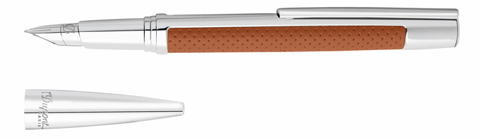 Pluma realizada en Palladium y piel perforada tratada de máxima calidad en color camel. Plumín de trazo F y M. Sistema de carga por cartuchos. Posibilidad de adaptar convertidor R408812.